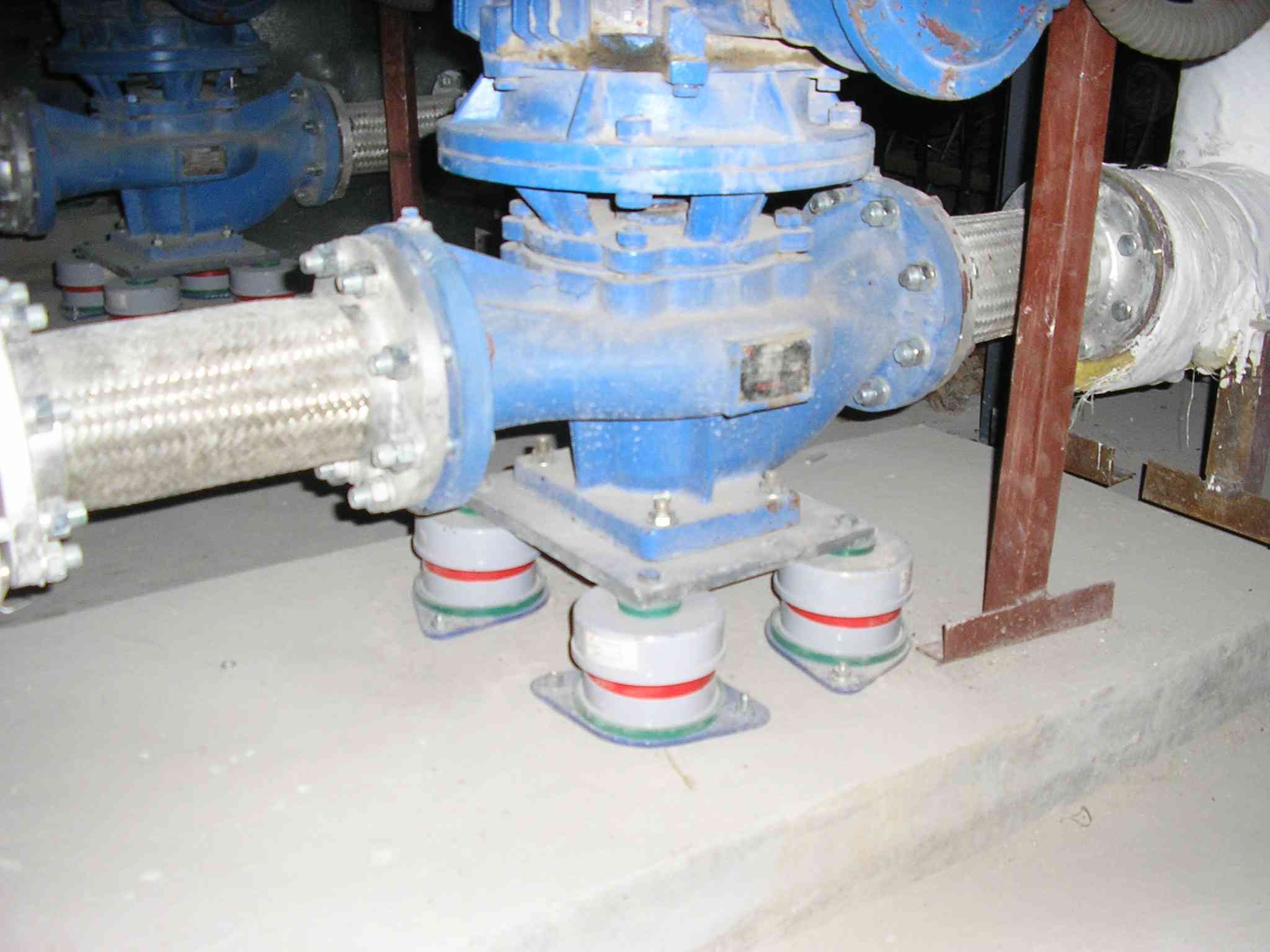 3)机组振动噪声治理:水泵运行中由机组振动引起的,是一个技术难点,将振动源与承载物或地基之间的刚性连接,改为弹性连接,利用弹性装置的隔振作用,减弱振动源与承载物或地基之间的能量传递,降低振动对环境的影响并通过基座传播的固体声污染是治理中的主要问题,只有针对结症所在,认真计算,合理使用水泵机组专用复合隔振台,才能达到治理目的。