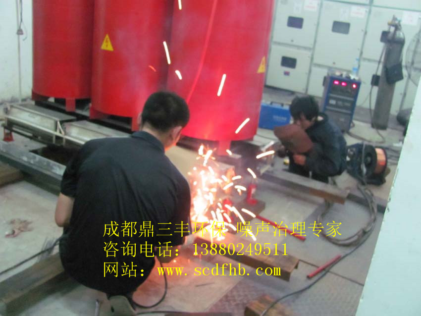 针对水城之星小区变电机组噪声振动产生原理和特点,我们成都鼎三丰环保工程有限公司工程师与业主方工程师对现场进行了实际勘察,在一楼变电机房里感觉噪声A声级并不是特别大,但地面发麻,基础振动明显,楼上由于固体结构传声引发的低频噪声很明显,一直影响到6楼,居民意见非常大。我们认为机组基础没有进行精确减震与机房内低频噪声共振是影响楼上业主家里声环境的主要因素,为此我们确定我们的施工方案与降噪目标。