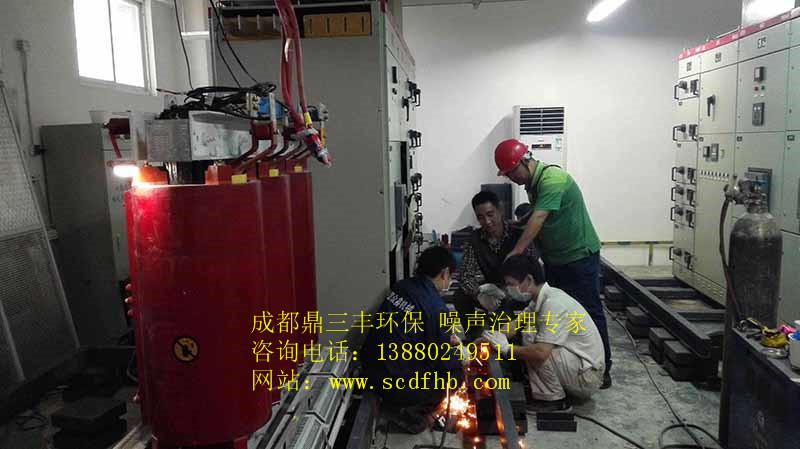 针对中国科技节能大厦配电室噪声振动产生原理和特点,我们成都鼎三丰环保工程有限公司工程师与业主方工程师对现场进行了实际勘察,在27楼配电机房里感觉噪声A声级并不是特别大,但地面发麻,基础振动明显,房间低频内翁鸣声严重,由于28楼配电房机组运行时引发的固体结构传出低频噪声很明显,一直影响26、27、29、30四层楼,业主意见非常大。经过详细的实地勘察,我们认为变压器机组基础没有进行精确减振与机房内变压器控制柜低频噪声共振是影响相邻四层楼业主房间里声环境的主要因素,为此我们确定我们的施工方案与降噪目标。