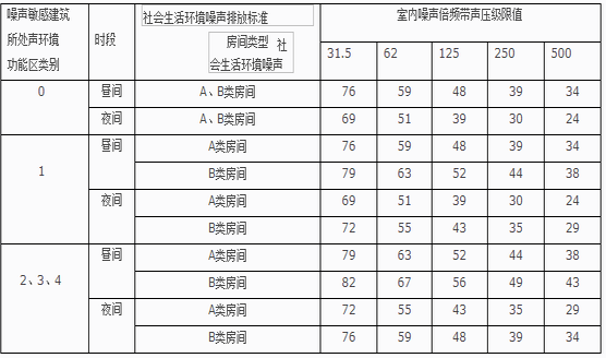 4.2.1在社会生活噪声排放源位于噪声敏感建筑物内情况下,噪声通过建筑物结构传播至噪声敏感建筑物室内时,噪声敏感建筑物室内等效声级不得超过表2和表3规定的限值。